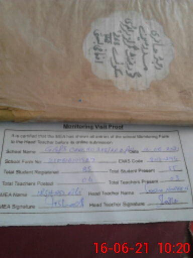 | Certified that this School was Inspected by the Undersigned MEA/DMO Today and the Information Stated Above is as Per Record. | |||||