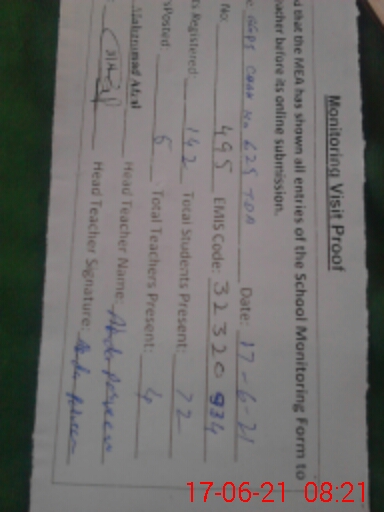 | Certified that this School was Inspected by the Undersigned MEA/DMO Today and the Information Stated Above is as Per Record. | |||||