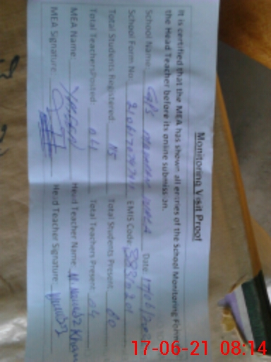 | Attendance Register | Head Teacher | MEA with School | Visit Proof |