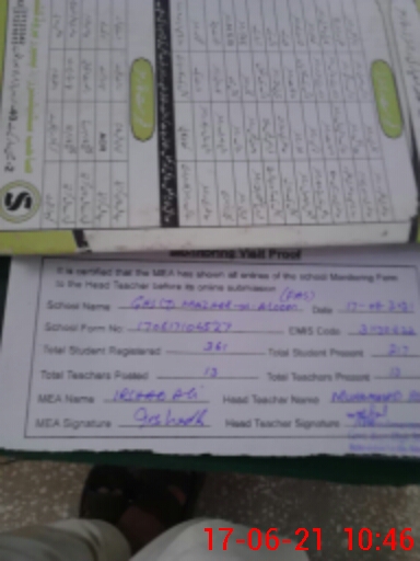 | Attendance Register | Head Teacher | MEA with School | Visit Proof |
