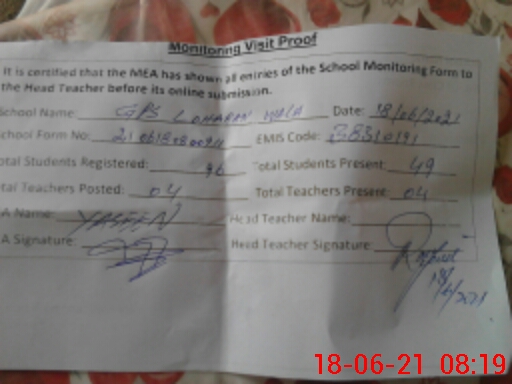 | EMIS Code: 38310191 | Name of School: GPS LOHARAN WALA | |||