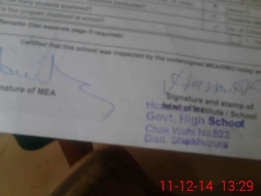| Certified that this School was Inspected by the Undersigned MEA/DMO Today and the Information Stated Above is as Per Record. | |||||