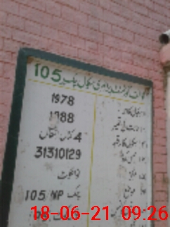 | EMIS Code: 31310129 | Name of School: GPS CHAK NO. 105/NP | |||