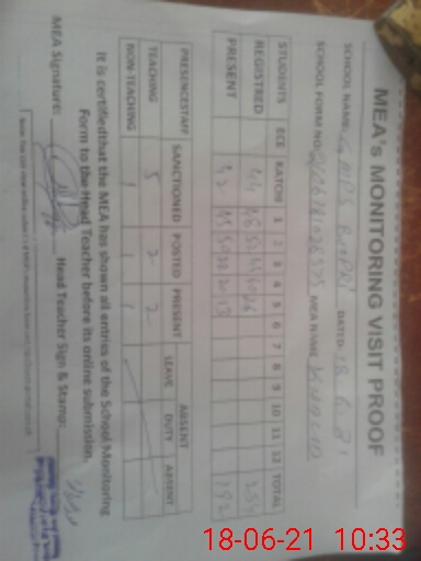 | Attendance Register | Head Teacher | MEA with School | Visit Proof |