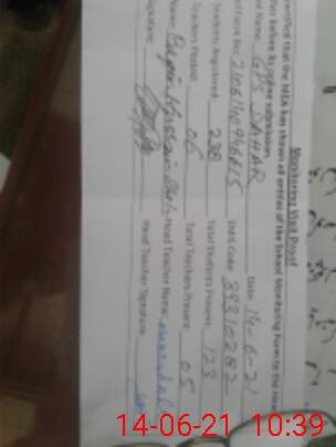 | Certified that this School was Inspected by the Undersigned MEA/DMO Today and the Information Stated Above is as Per Record. | |||||