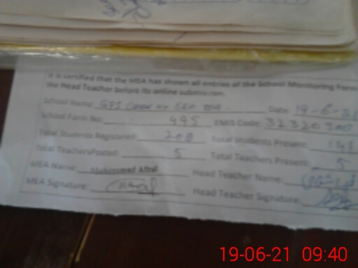 | Certified that this School was Inspected by the Undersigned MEA/DMO Today and the Information Stated Above is as Per Record. | |||||