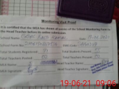 | Attendance Register | Head Teacher | MEA with School | Visit Proof |