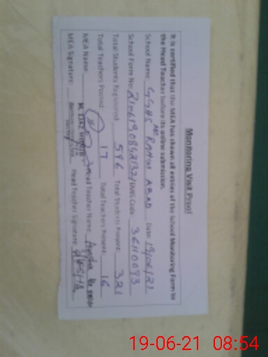 | Certified that this School was Inspected by the Undersigned MEA/DMO Today and the Information Stated Above is as Per Record. | |||||
