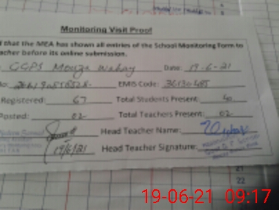 | Attendance Register | Head Teacher | MEA with School | Visit Proof |
