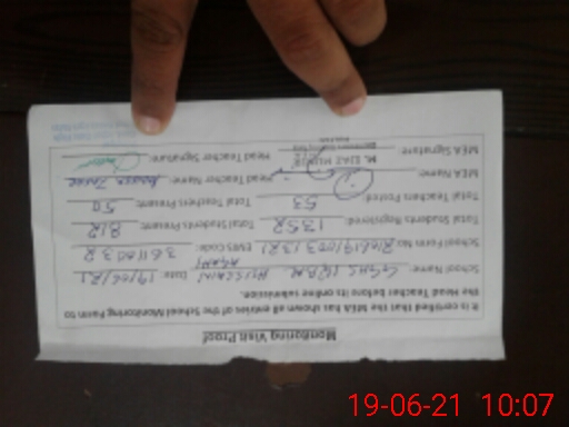 | Certified that this School was Inspected by the Undersigned MEA/DMO Today and the Information Stated Above is as Per Record. | |||||