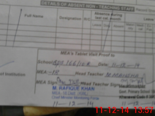 | Attendance Register | Head Teacher | MEA with School | Visit Proof |