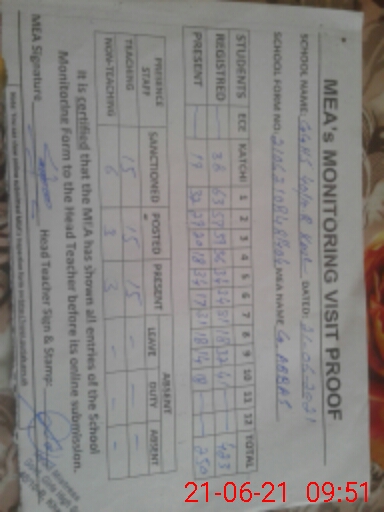| Certified that this School was Inspected by the Undersigned MEA/DMO Today and the Information Stated Above is as Per Record. | |||||
