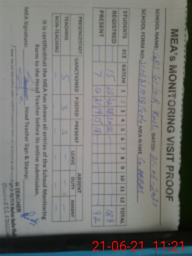 | Attendance Register | Head Teacher | MEA with School | Visit Proof |