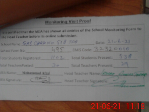 | EMIS Code: 32320010 | Name of School: GHS CHAK NO.518 TDA | |||