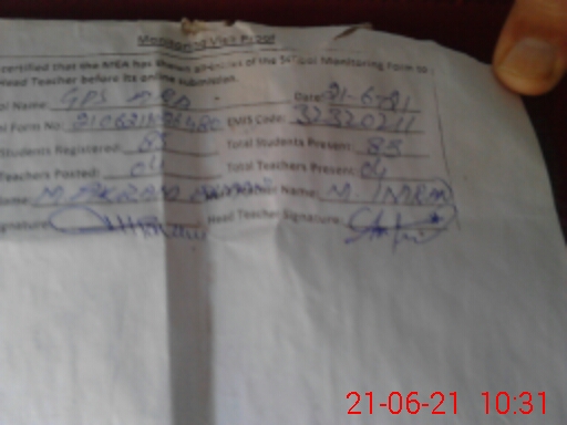 | Attendance Register | Head Teacher | MEA with School | Visit Proof |