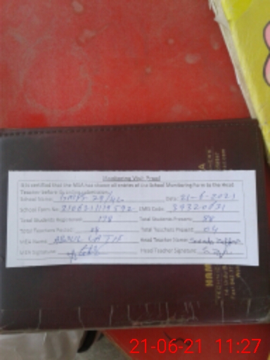 | Certified that this School was Inspected by the Undersigned MEA/DMO Today and the Information Stated Above is as Per Record. | |||||