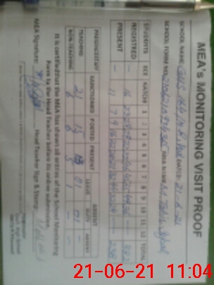 | Monitoring Date: 21-06-2021 | Start Time: 21-06-2021 09:46 AM | End Time: 21-06-2021 11:06 AM | Name of MEA: M.Ta**** Iq**** (S**** | |