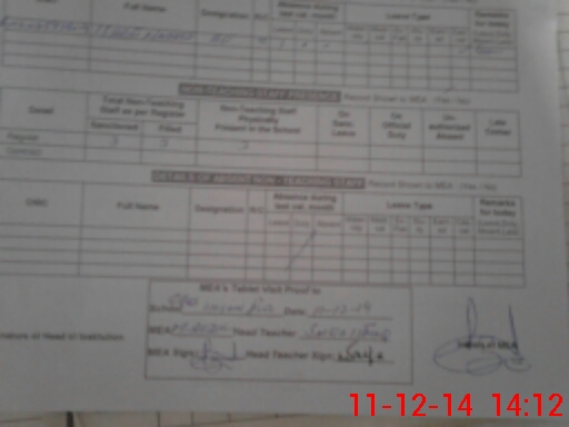 | Attendance Register | Head Teacher | MEA with School | Visit Proof |