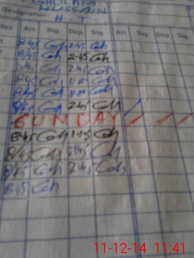 | Monitoring Date: 11-12-2014 | Start Time: 11-12-2014 11:32 AM | End Time: 11-12-2014 11:43 AM | Name of MEA: Ma**** Ah**** -S**** | |