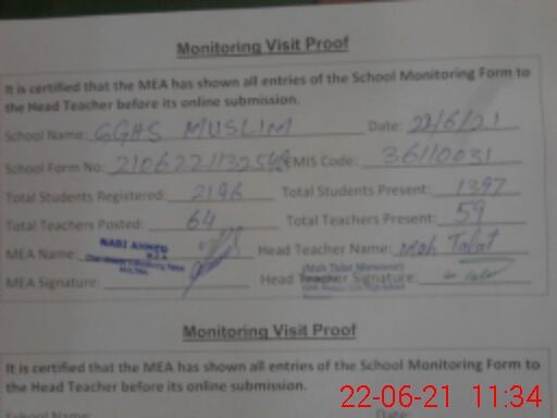 | EMIS Code: 36110031 | Name of School: GGHS MUSLIM PUL MOJ DARYA | |||