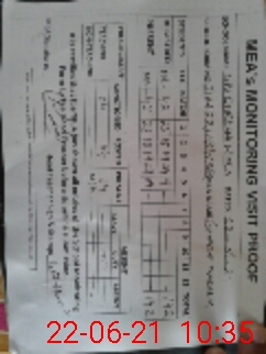 | Monitoring Date: 22-06-2021 | Start Time: 22-06-2021 09:57 AM | End Time: 22-06-2021 10:37 AM | Name of MEA: Sh**** Na**** | |