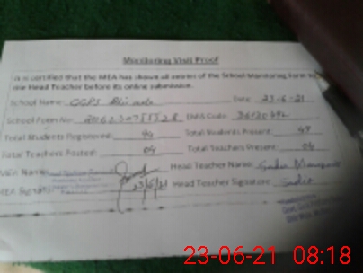 | Attendance Register | Head Teacher | MEA with School | Visit Proof |