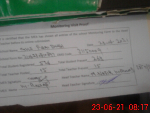 | EMIS Code: 31150009 | Name of School: GHS FIDAI SHAH | |||