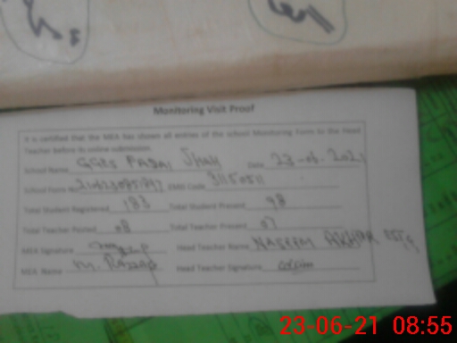 | Name: If**** Na**** Designation: (School Headmaster's/Headmistress's) SST Phone/Cell Number: 03**** |