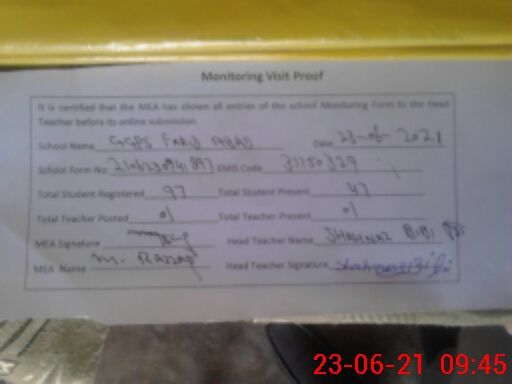 | EMIS Code: 31150329 | Name of School: GGPS FARID ABAD | |||