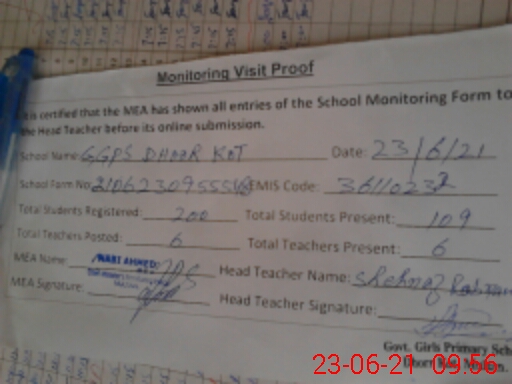 | EMIS Code: 36110232 | Name of School: GGES DHOOR KOT SURAJ MIANI MULTAN | |||