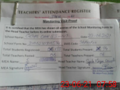 | Attendance Register | Head Teacher | MEA with School | Visit Proof |