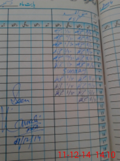 | CNIC | Full Name | Designation | R/C | Absence During Last Calender Month |