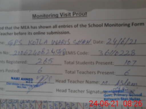 | EMIS Code: 36110228 | Name of School: GPS KOTLA WARIS SHAH | |||
