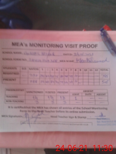 | Certified that this School was Inspected by the Undersigned MEA/DMO Today and the Information Stated Above is as Per Record. | |||||