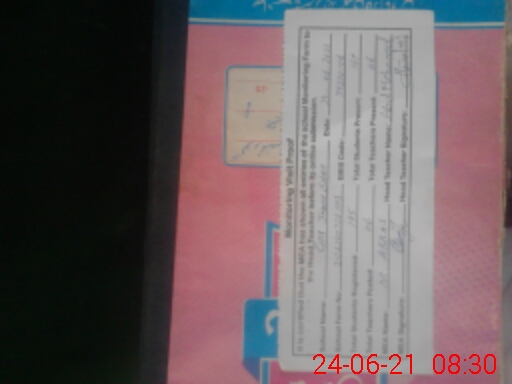 | School Visited by School Health & Nutrition Supervisor (No. of Visits) | 1 | Name1: | M RAMZAN | Name2: | NIL |