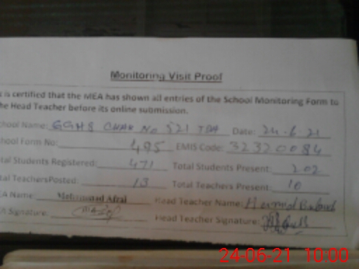 | EMIS Code: 32320084 | Name of School: GGHS CHAK NO. 521/TDA | |||