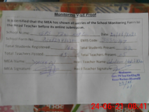| Certified that this School was Inspected by the Undersigned MEA/DMO Today and the Information Stated Above is as Per Record. | |||||