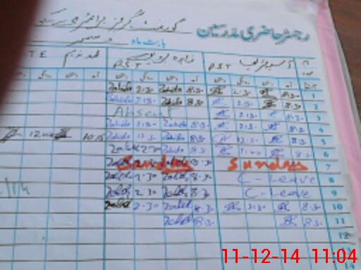| CNIC | Full Name | Designation | R/C | Absence During Last Calender Month |