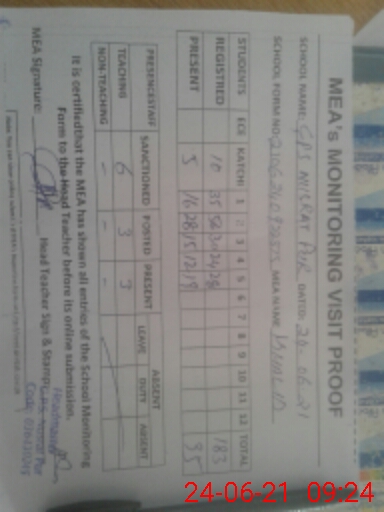 | Monitoring Date: 24-06-2021 | Start Time: 24-06-2021 07:35 AM | End Time: 24-06-2021 09:29 AM | Name of MEA: Kh**** Me**** | |