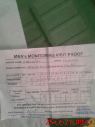 | Certified that this School was Inspected by the Undersigned MEA/DMO Today and the Information Stated Above is as Per Record. | |||||