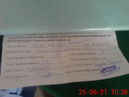 | Monitoring Date: 25-06-2021 | Start Time: 25-06-2021 10:06 AM | End Time: 25-06-2021 10:37 AM | Name of MEA: Gh**** Ya**** (R**** | |