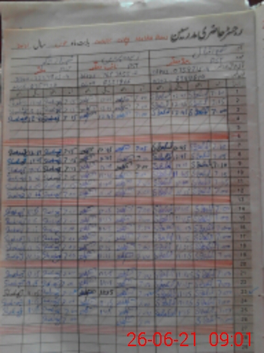 | CNIC | Full Name | Designation | R/C | Absence During Last Calender Month |