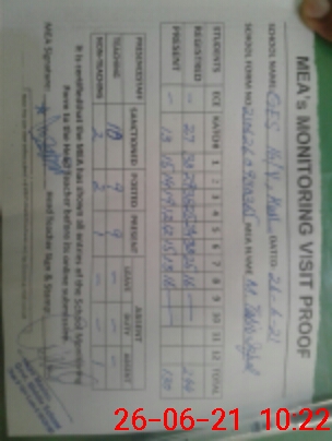| Monitoring Date: 26-06-2021 | Start Time: 26-06-2021 09:30 AM | End Time: 26-06-2021 10:24 AM | Name of MEA: M.Ta**** Iq**** (S**** | |