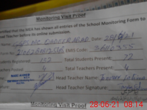 | EMIS Code: 36110355 | Name of School: GGPS MC QADEER ABAD MULTAN | |||