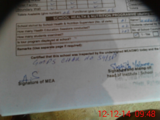 | Certified that this School was Inspected by the Undersigned MEA/DMO Today and the Information Stated Above is as Per Record. | |||||