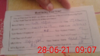 | Monitoring Date: 28-06-2021 | Start Time: 28-06-2021 08:51 AM | End Time: 28-06-2021 09:08 AM | Name of MEA: Za**** Iq**** BN**** | |
