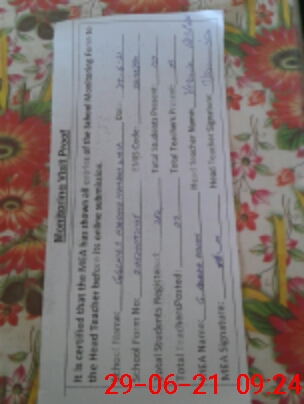 | Attendance Register | Head Teacher | MEA with School | Visit Proof |
