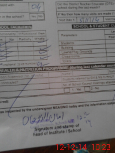| Certified that this School was Inspected by the Undersigned MEA/DMO Today and the Information Stated Above is as Per Record. | |||||