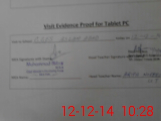| Attendance Register | Head Teacher | MEA with School | Visit Proof |