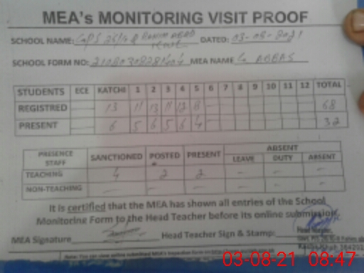 | Attendance Register | Head Teacher | MEA with School | Visit Proof |